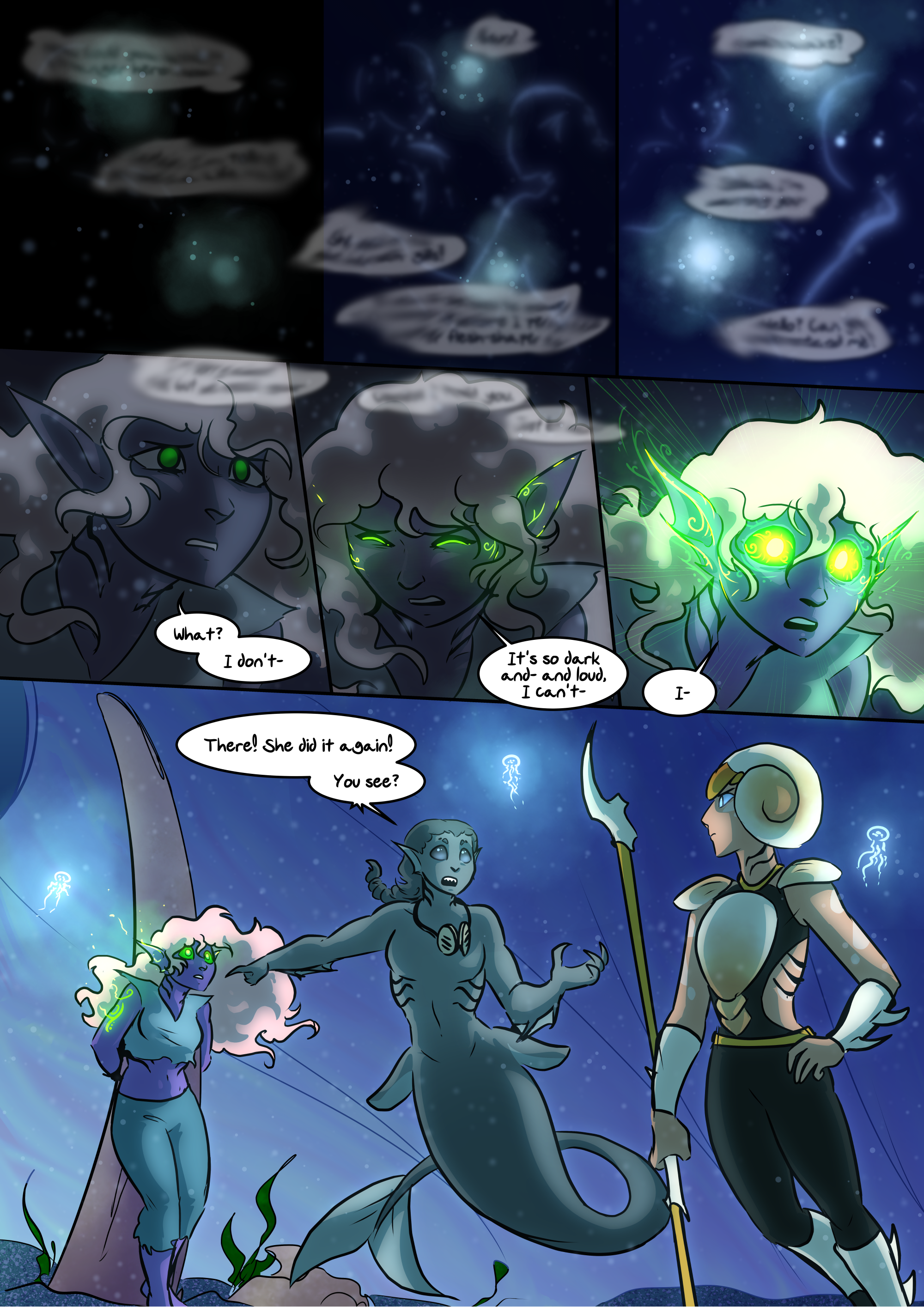 *Patience and empathy. Those need to go hand in hand. Also why did the Mermaid take their armbands off? Also the Sekrai is wearing a nautilus helmet! Are they half-human? I ask because I think full Sekrai are generally fishier and more glowy. I assume Sekrai eyes and ears can work both on land and in water, so hopefully Alinua’s…modifications, I guess, were based off Sekrai rather than Merfolk. I’m still panicking though. Ali’s going to need to be able to actually *choose* what is done with this new power and she might need to learn FAST. Once again, Life is a *bad* communicator. And these sea-people might be pretty terrible listeners at least in this case.