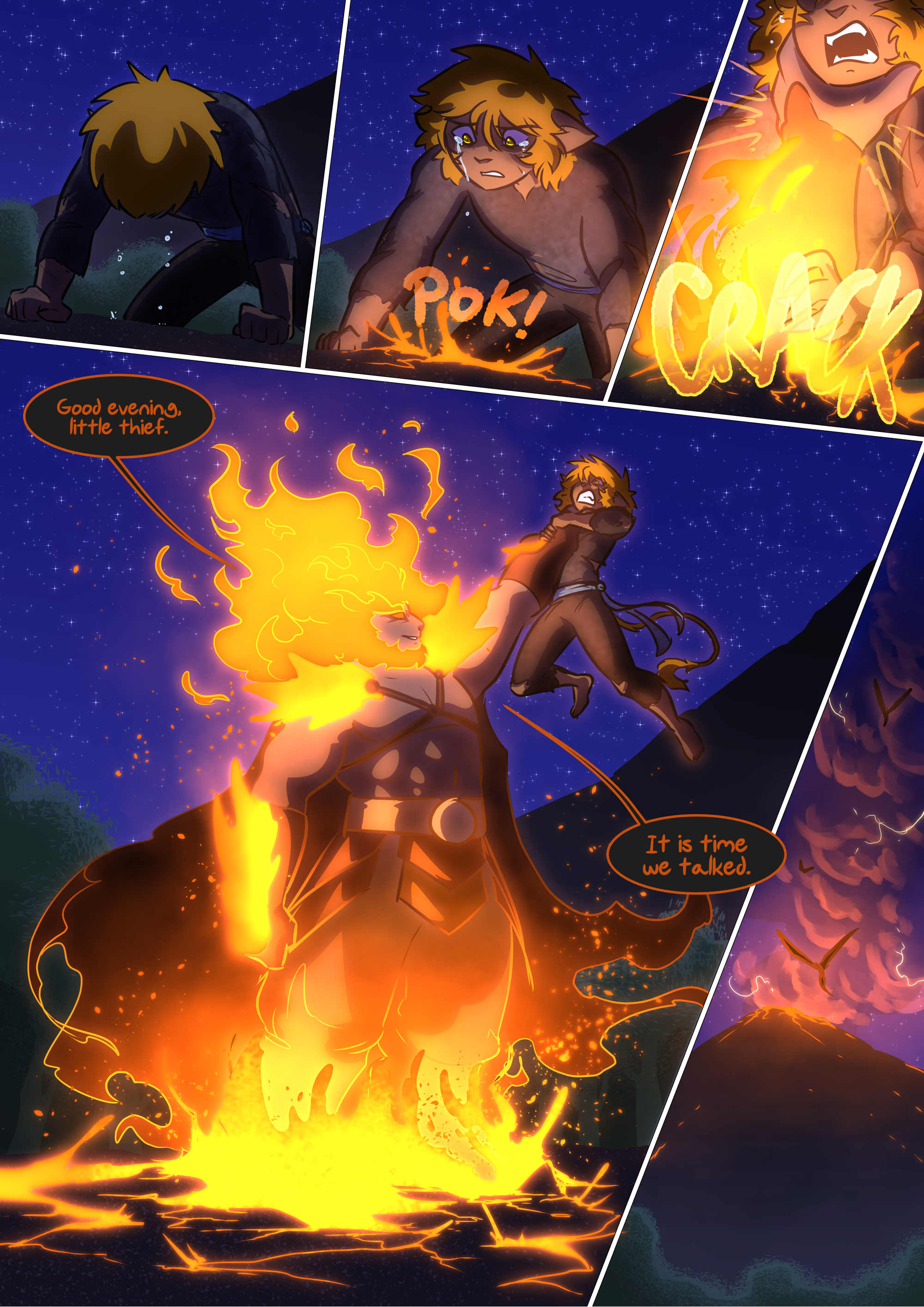 Let’s not panic just yet though. Rakhn, although in fiery form, is speaking calmly and wants to talk, so Falst isn’t in immediate danger. I’m also quietly confident Rakhn may like him; having nothing by polite and reverent talk from his people for years, Falst’s snarkiness could be a breath of fresh air.